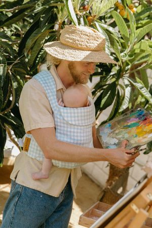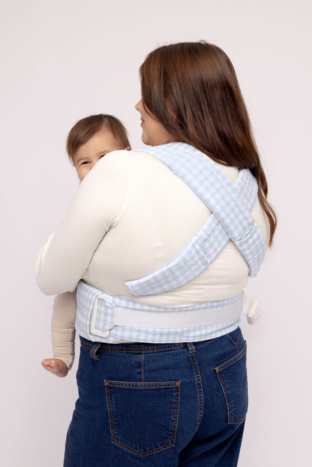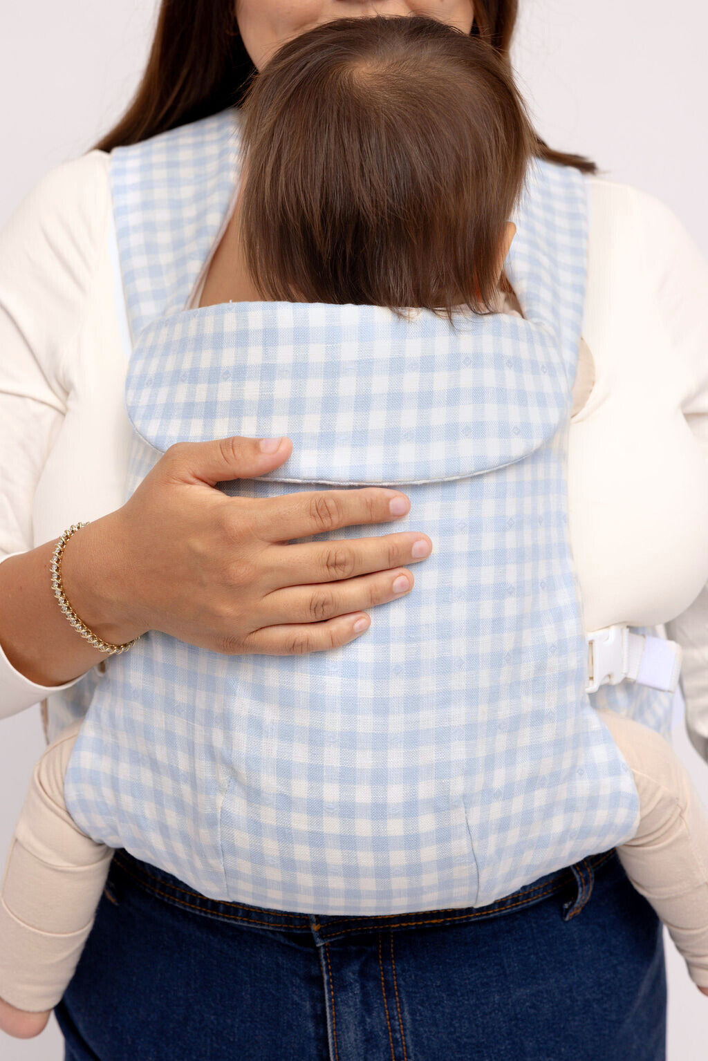 White and blue linen interwoven into a gingham pattern. With tiny diamond details.