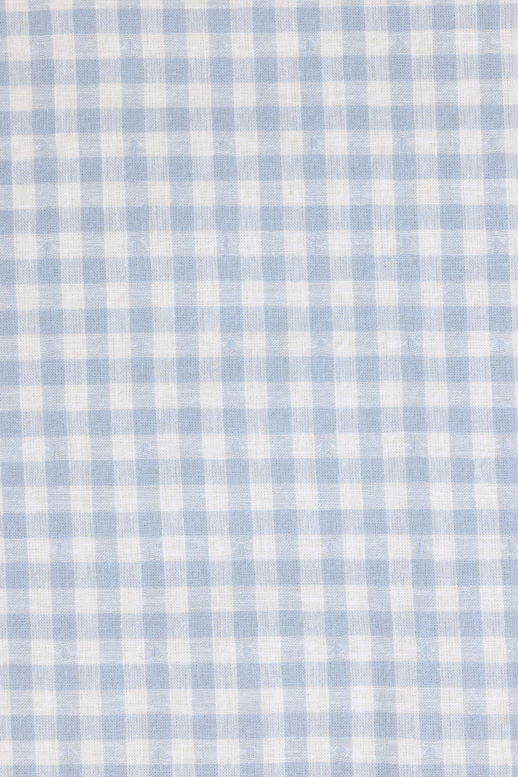 White and blue linen interwoven into a gingham pattern. With tiny diamond details.