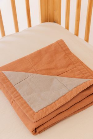 Snuggle your babe in comfort and style with this reversible quilted baby blanket! Its versatile design makes it easy to switch up the look. while the breathable and durable linen and cotton blend ensures cozy warmth and comfort for your little one.