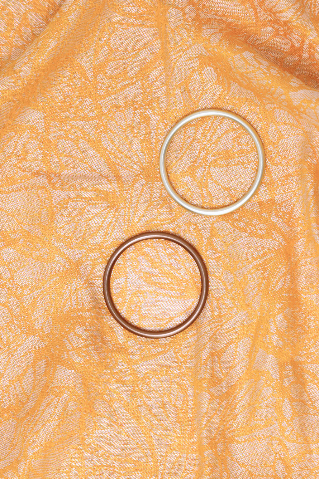 A Jacquard woven with orange and white threads into intricate butterfly wings.